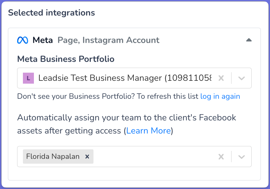 3.b. Choose the team member you want to be automatically assigned to the assets (so you won't need to manually go into Business Manager and assign yourself or any team member to every asset)